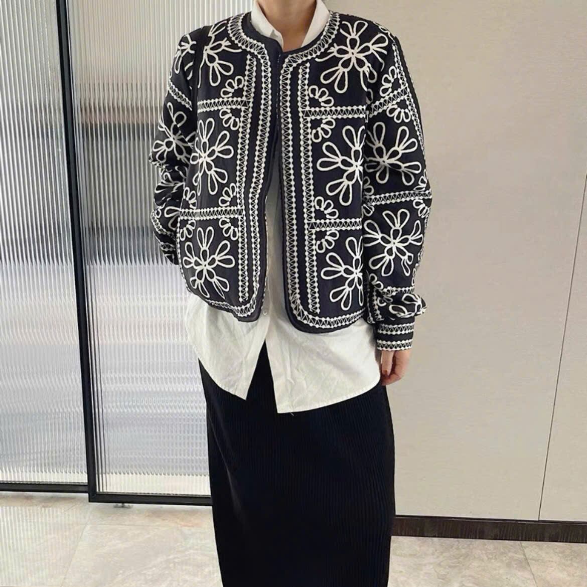 ノーカラーのデザインは、インナーを選ばず、様々なスタイルに合わせやすいのが魅力。