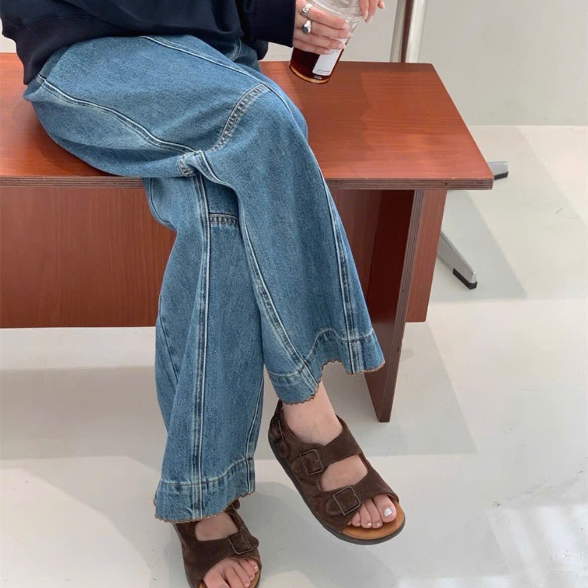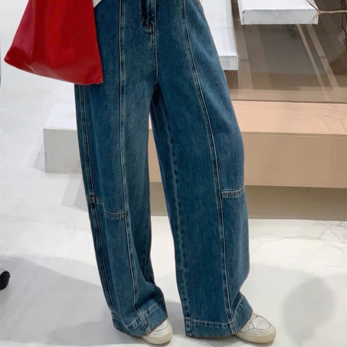 カジュアルながらも洗練された印象のハイウエストワイドレッグジーンズです。