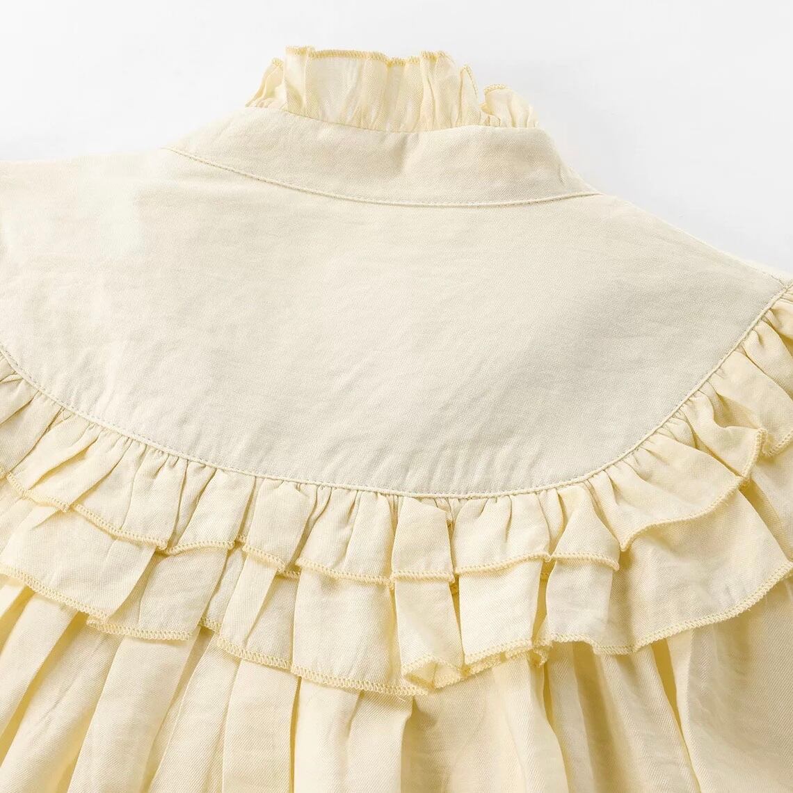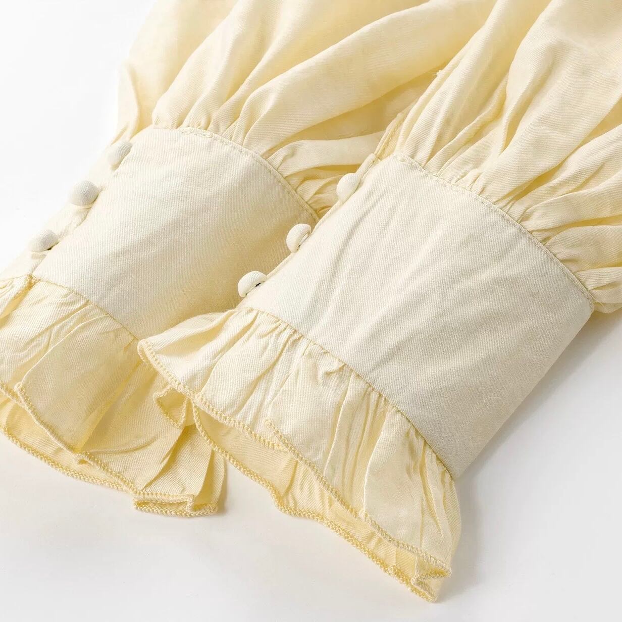 袖口にもフリルがあしらわれており、さりげない可愛らしさを演出します。