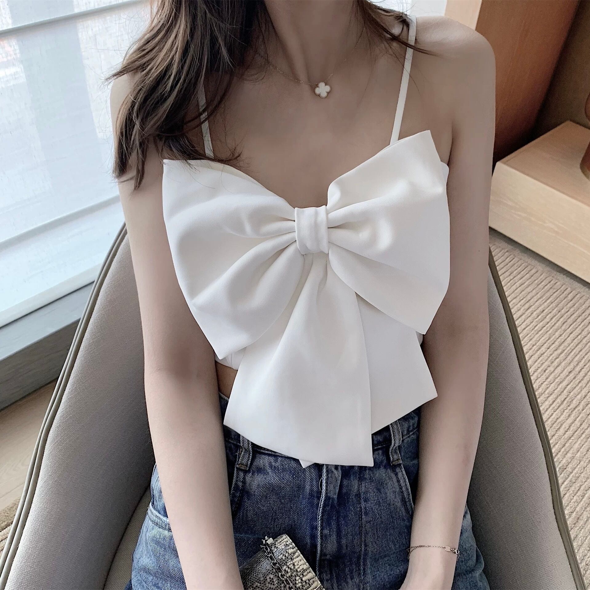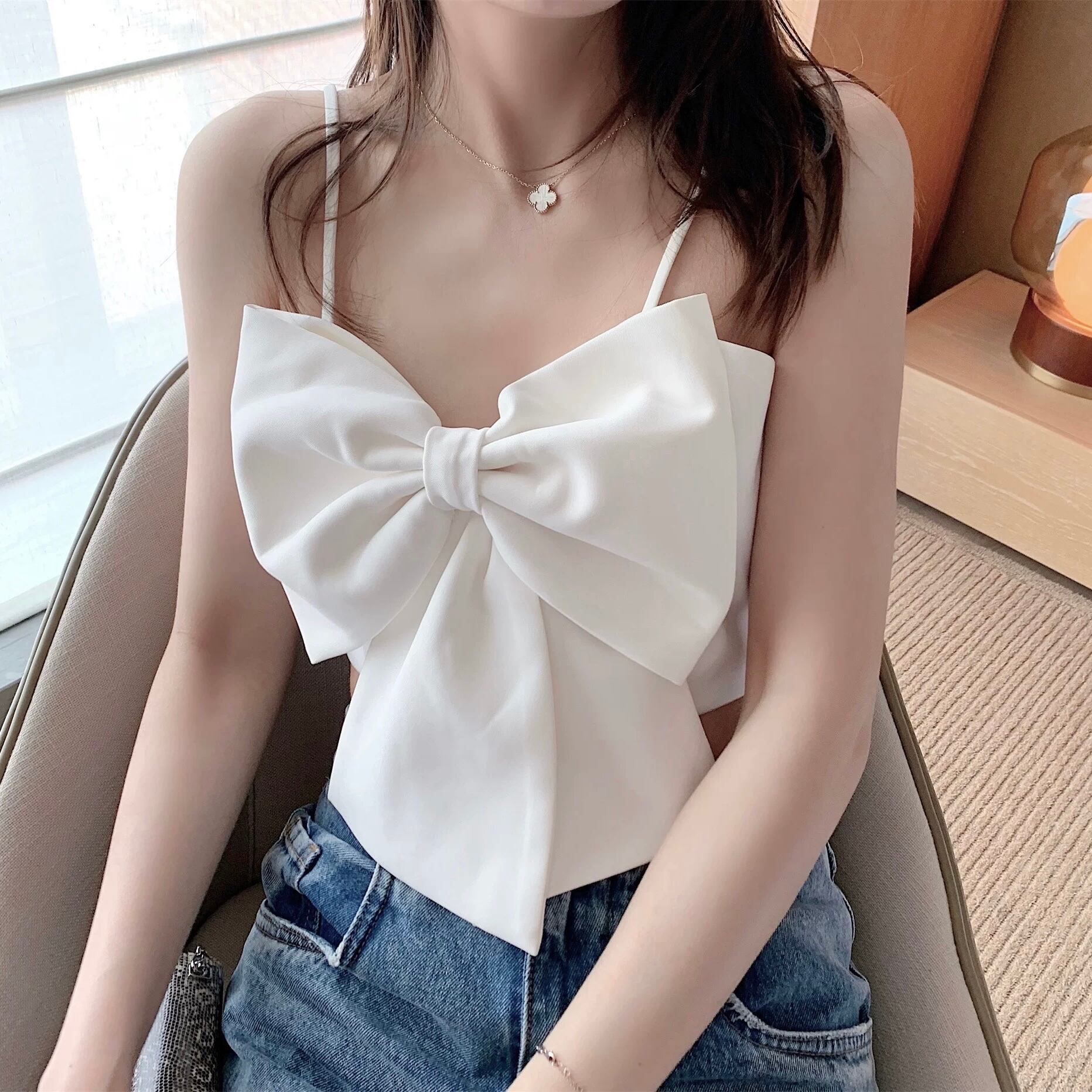 Big Ribbon Cropped No-Sleeve Top