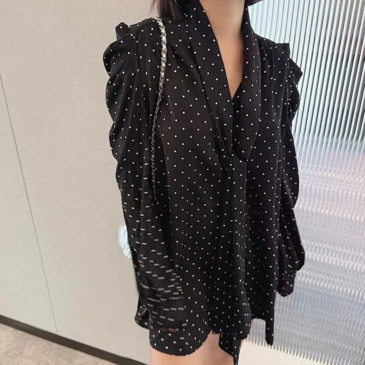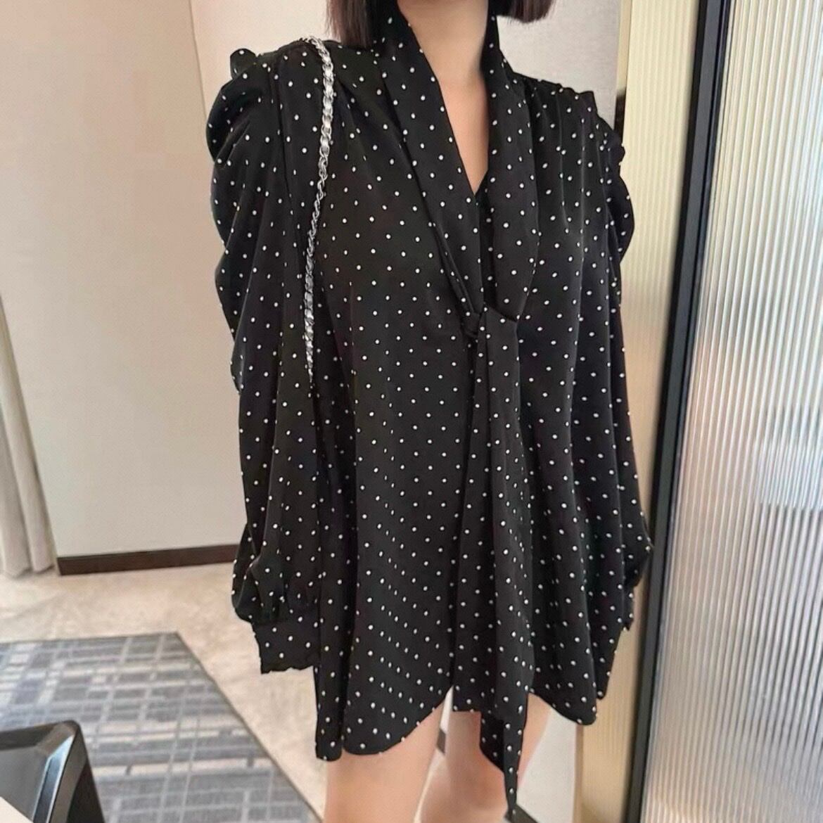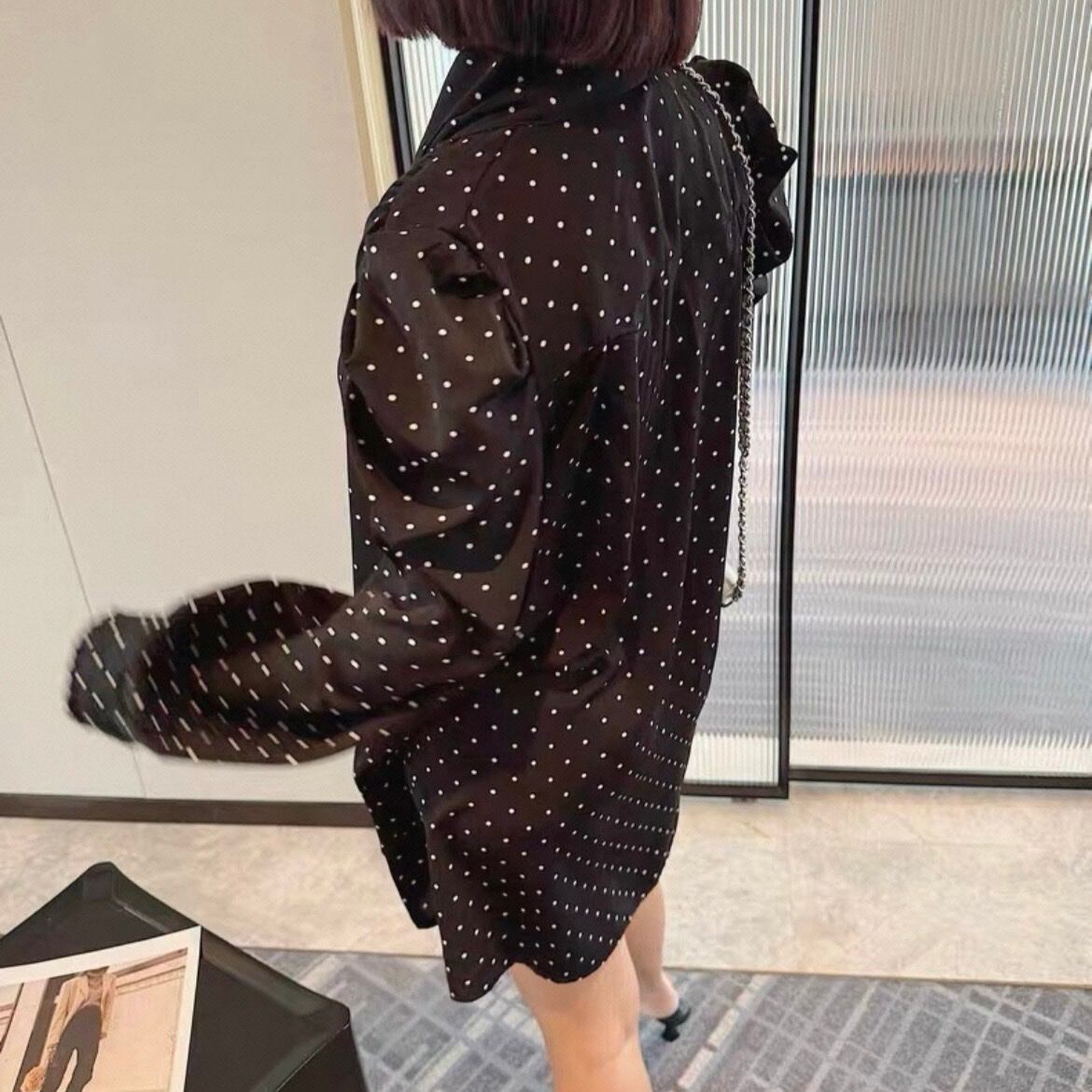 Open Collar Long Sleeve Dot Pattern Mini Dress