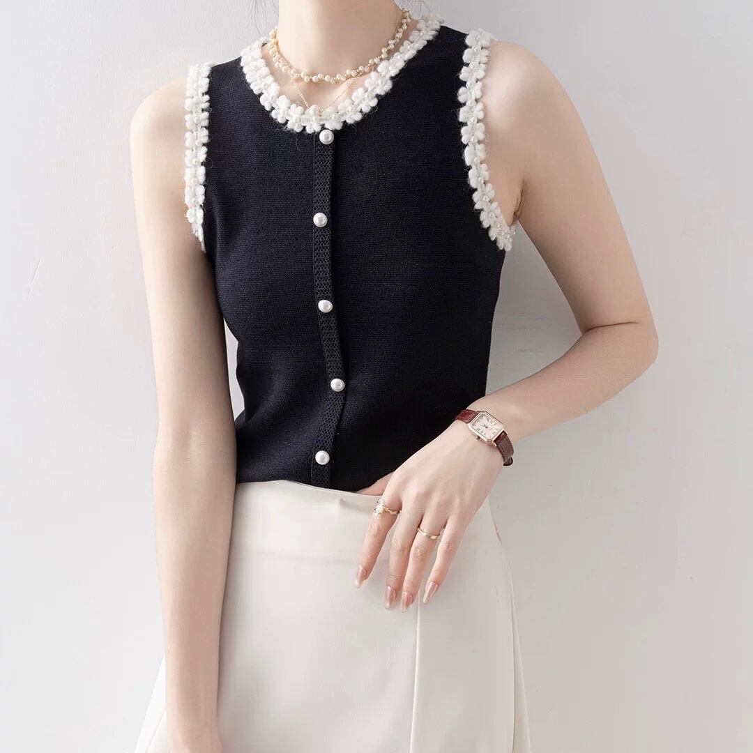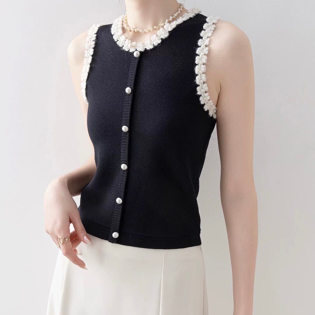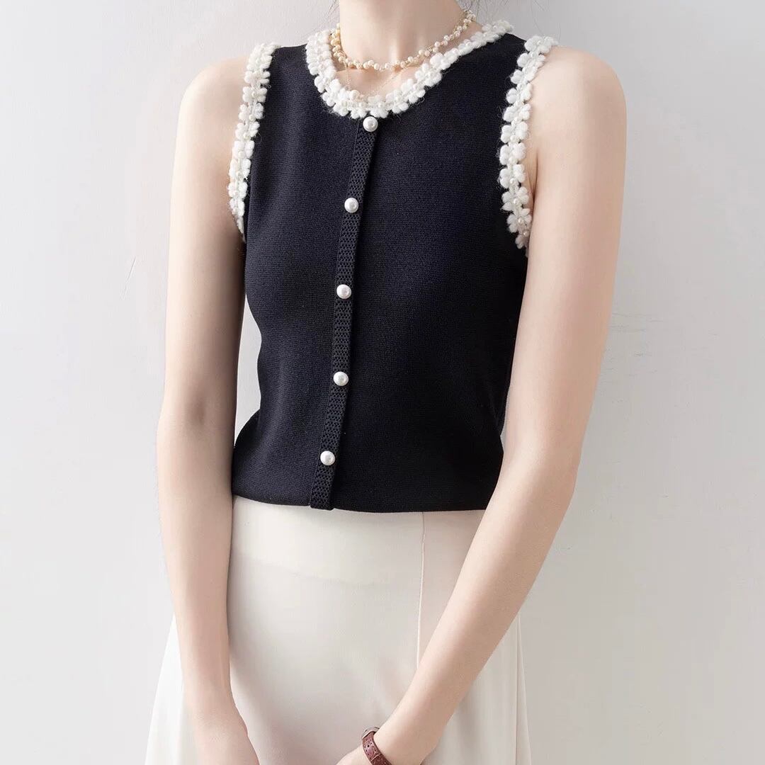 清楚な印象を与えるノースリーブニット。