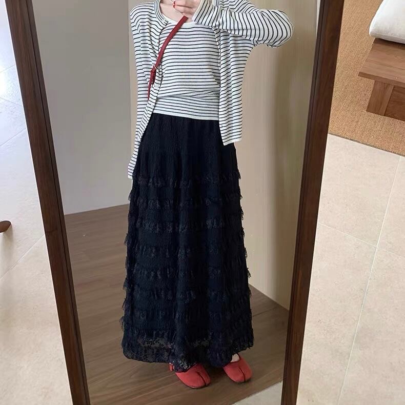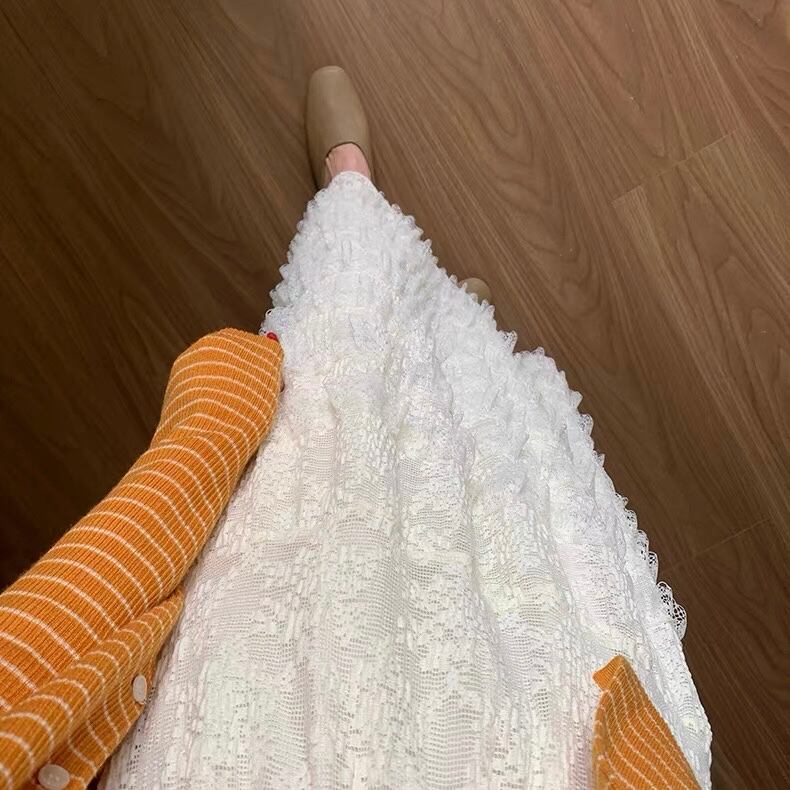 繊細なフリルレースが目を引くミディ丈のフレアスカートです。