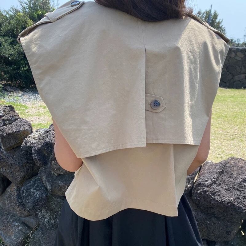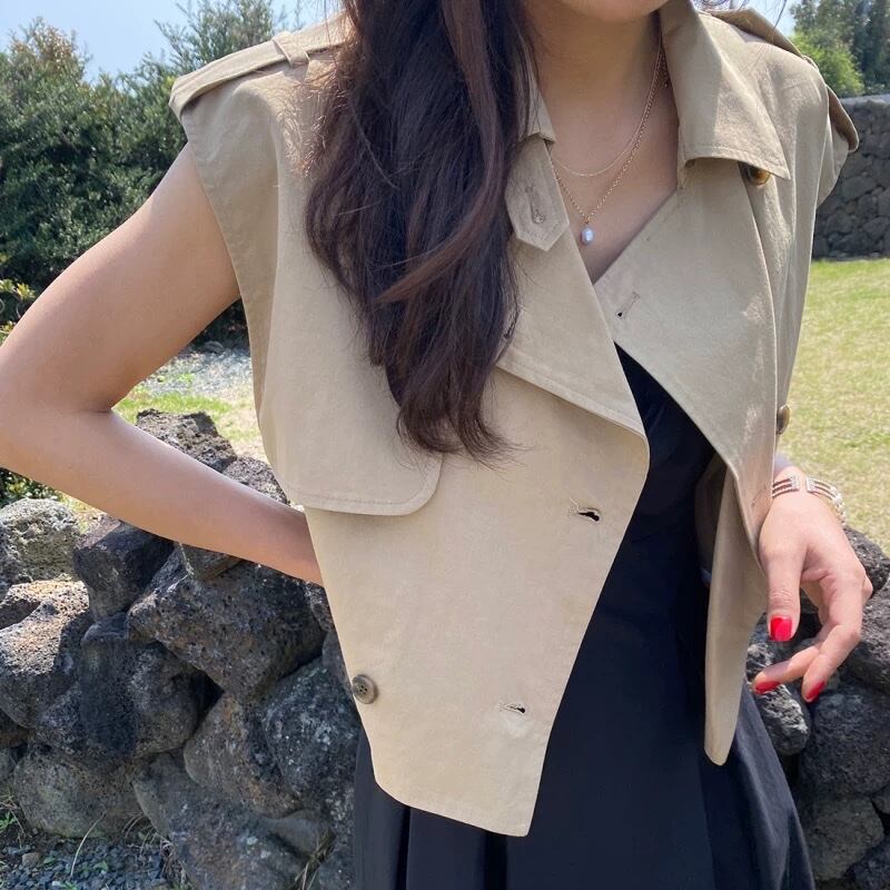 Open Collar Short Sleeveless Jacket 【 M260069 】